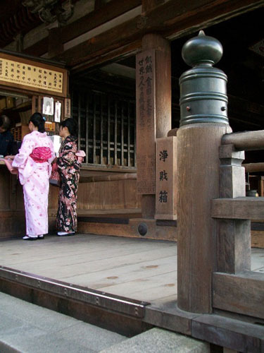 清水寺正殿後方為一間供奉愛神的的神社—地主神社。神社前有兩顆相距數公尺遠的岩石。