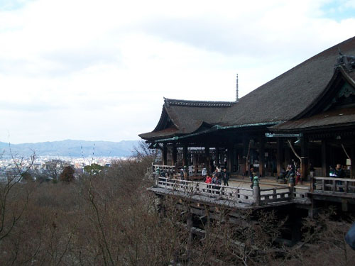 清水寺佇立於京都東部的山林丘上,站在其知名的木造露台上,遊客可以一覽京都美景。